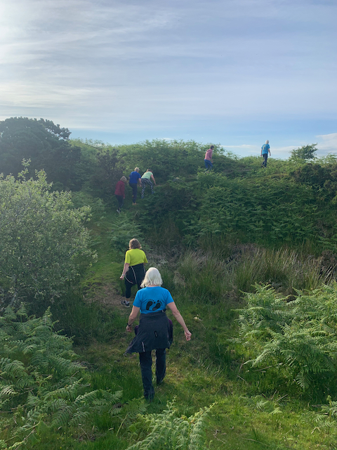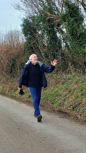 We continued through lumpy fields and gateways full of shaggy ,the gates having been tied up with blue string provided by Shorty Pants for some reason. After a good deal of downhill the inevitable climb back to the car park after an hour and a quarter.