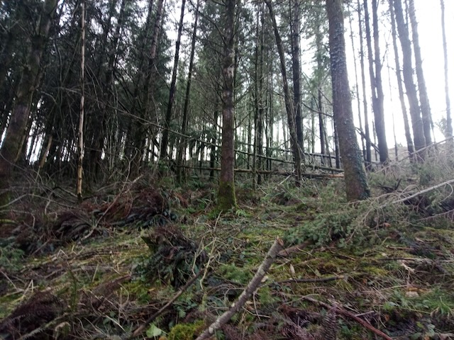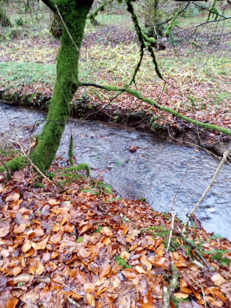 Across the level crossing and along the road to the next crossing before embarking on waterlogged fields, rough cleared scrubland full of bramble loops to trip the unsuspecting and extremely muddy woodland track also strewn with brambles. It was in this mud I learned a new word courtesy of Scarlet Moggy informing me at least the mud was “unmanureal”.