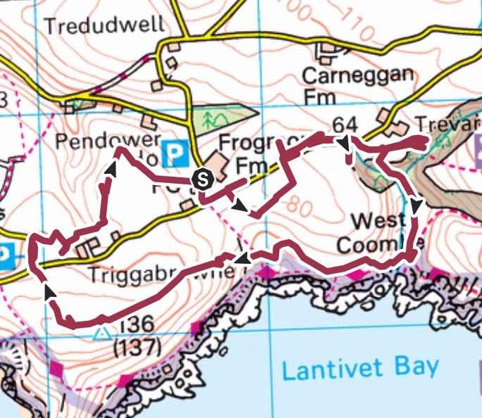 It was good to see Carnage at Tokenbury Corner for Sundays run after his short break having stepped up to help the hares laying the trail. We were briefed by Rubber Legs who had written a essay of information about the run to impart to the gathered multitude before we set off on Foredown expecting a run around Caradon Hill and the Moor, this soon altered when we crossed the road and headed into farmland.