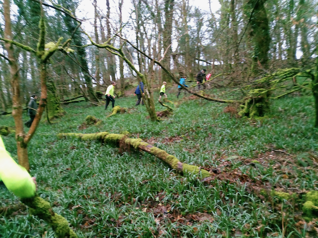 After the beerstop, courtesy of Er Indoors and Mama Mia, thanks, the trail continued down an icy steep hill to more woodland tracks before arriving back at the cars/coach in just under 2 hours.
