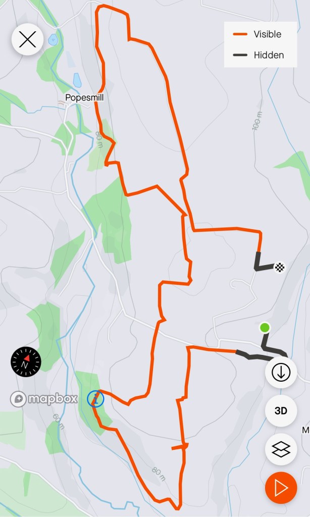 There were a lot of hills, very steep ones, and it seemed to take an age to get up each one. Sun Dodger was very helpful in helping to do a bit of short cutting and at one point, mid way round, I found myself in front at a gate where there was a check. That didn’t last long, as there was then another very steep hill and I thought Invisible Man was never going to get to the top.