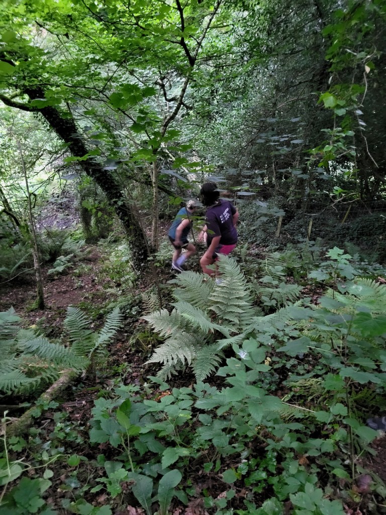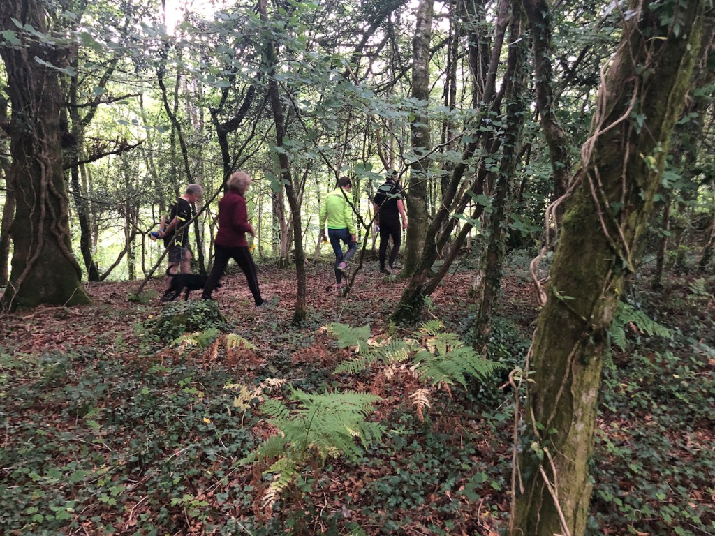 We went through lots of lovely leafy and sometimes very muddy tracks into the woods, across a corner of a field and back into the woods again. By this time Forrest was getting very hot , so she took off her jacket and stuffed that in my bag too!! She didn’t consider that I was hot with everything being added. In the woods the hashers seemed to be getting very confused with Forrest going straight but seeing nothing and Eric Big Axe, the helper hare saying he had no idea where the trail went as he didn’t lay this bit!!! I ask you- you would have thought he would have been more prepared- I thought he’d been a boy scout!