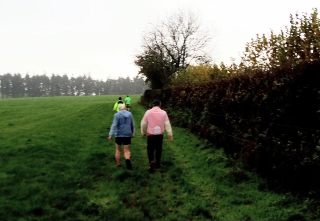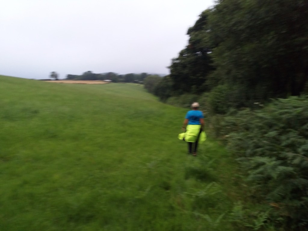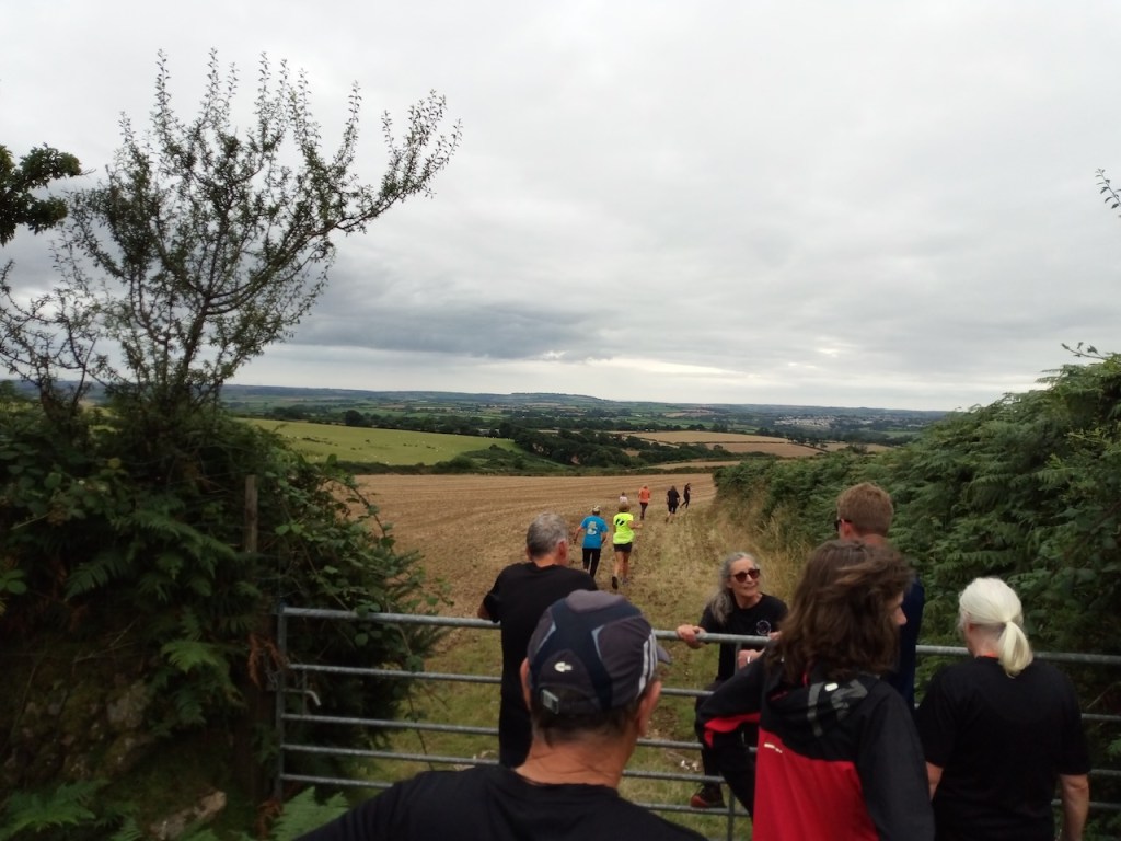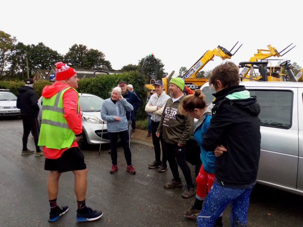 The briefing explained on farmer who did not want us to use his driveway to access a footpath allowed us to use his fields but did not want us to put down any sawdust, an odd request, overcome by Godmother and Biscuits marshalling us through these fields.