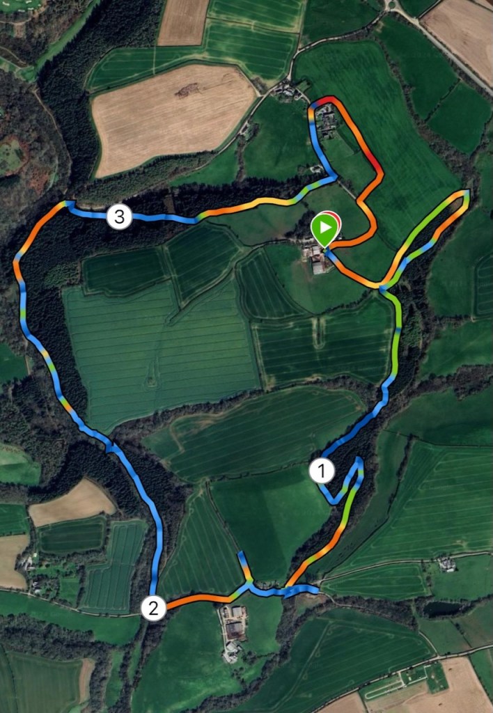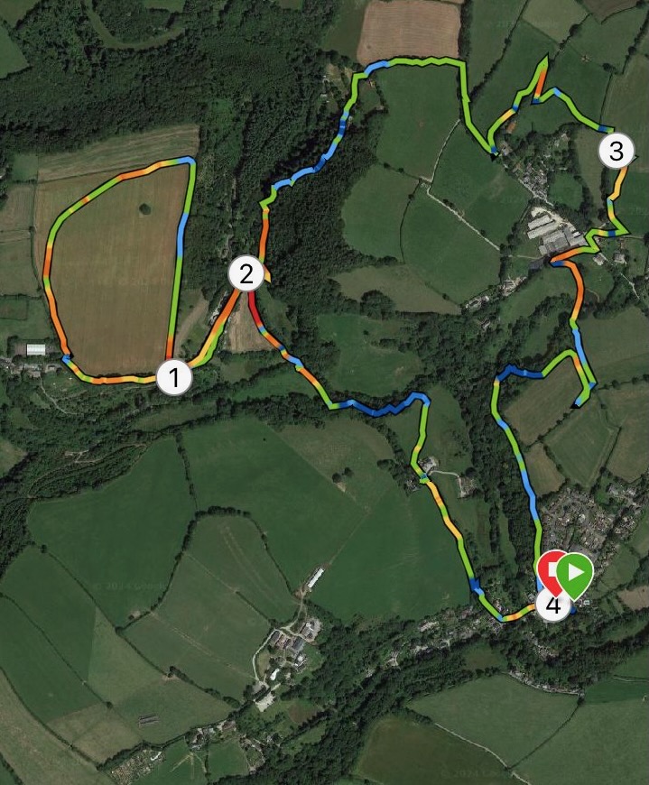 The run took us through pleasant farmland with plenty of hills and soggy fields before a run in through a scenic stretch of woodland alongside the River Lynher taking us back to the car park after about an hour and a quarter.