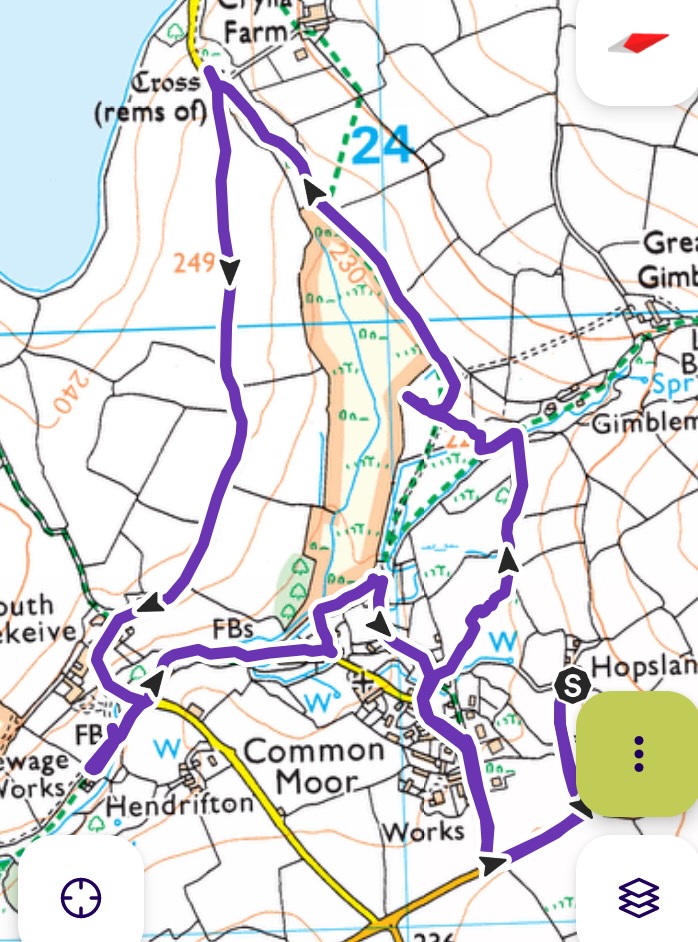 Instructions were given at the briefing by Sniffer,a long short split at the start, very slippery due to copious amounts of rain recently, careful crossing roads and run round the edge or in tram lines in planted fields, it was obvious later a couple of people had not been listening.