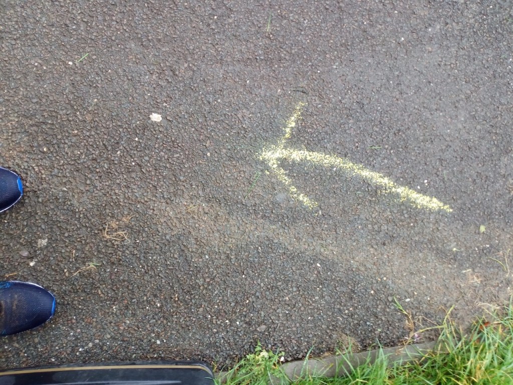 Back at the Halfway House the RA welcomed a visitor from Yorkshire, Psyco and awarded down downs to the hares Sniffer, B&M and Get One Free, thanks to them, Brillo for front running, Angus for a painful fall (see photo) and Hornby for forgetting his shorts and borrowing a pair of casual trousers to run in.