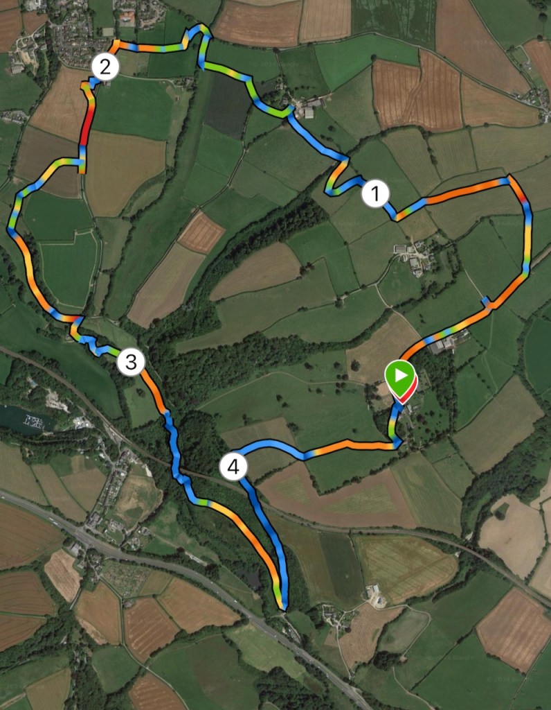 The run took us through four farms and St Cleer Common with plenty of shaggy, uneven ground and multiple bramble roots waiting to trip the unsuspecting in the latter, the long arriving back after one and a half hours.