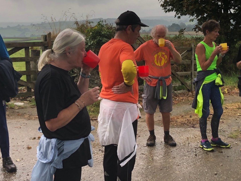 We set off with the first of two long short splits right at the start with Godmother shepherding the shorts and Biscuits the long. What followed was an arduous run through muddy fields and steep climbs so when Biscuits offered a short back to the cars near the end everyone but Hornby and Nosejob took up the offer. In spite of the shortcut, albeit almost vertical, it was still an hour and twenty five minutes but with the weather being kind again it was a very enjoyable outing.