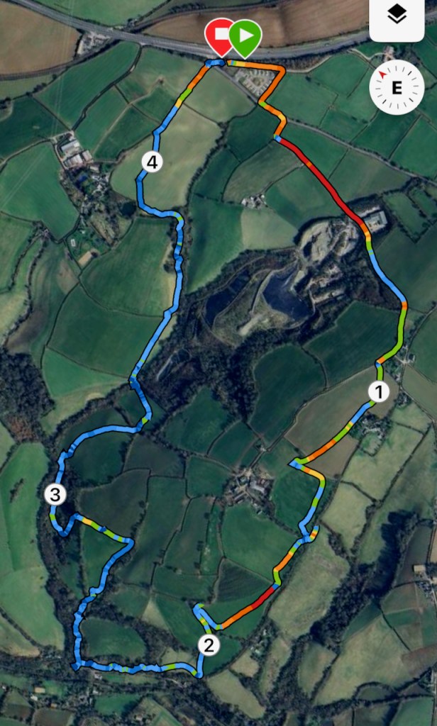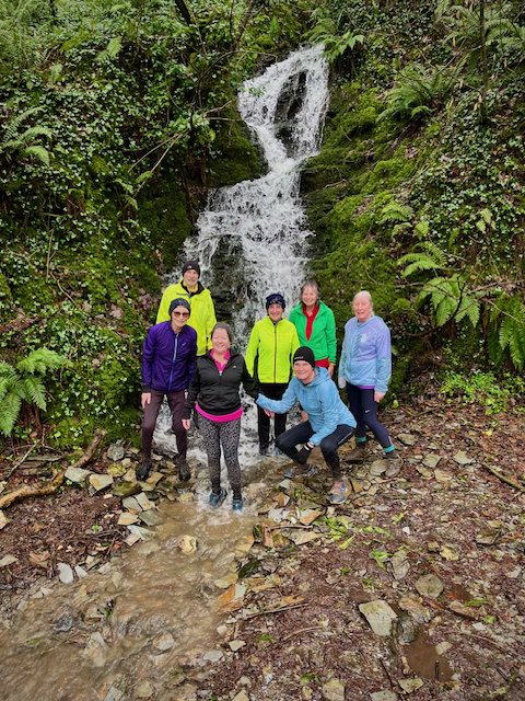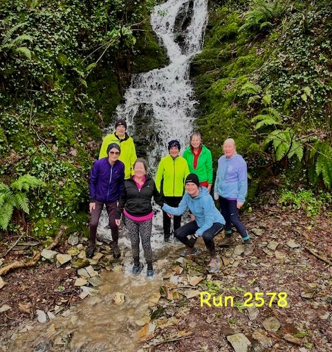 Fortunately the poor visibility improved to be able to witness both viewpoints over the spectacular Delabole quarry. Underfoot most of the footpaths resembled streams and where there wasn’t flowing water there was mud. The longs had a photo opportunity at a waterfall (see photos from Cyril the Squirrel). Great run despite the weather.