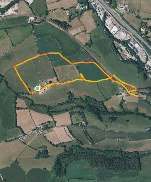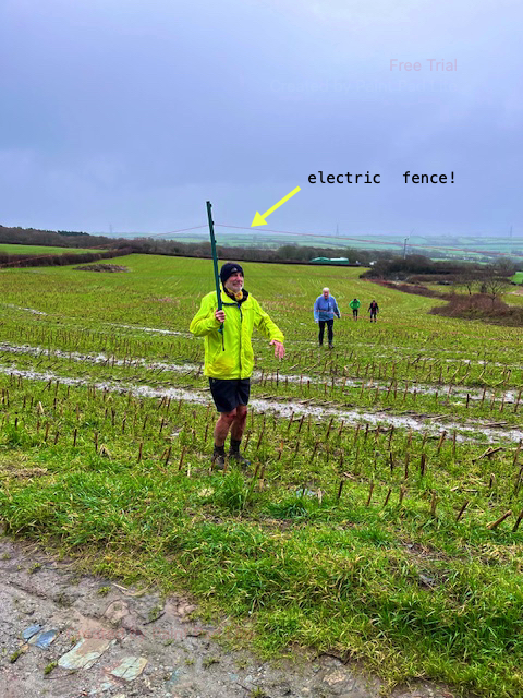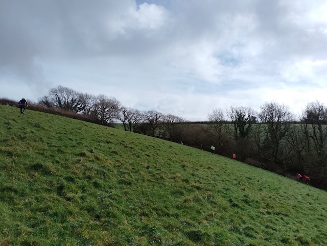 Three long short splits with the shorts and walkers heading down the lane and the longs headed down the field and into very boggy terrain. Both longs and shorts picked up the flour before heading across the railway for the second long short. Very wet and slippery fields were then crossed before emerging at the egg stop before heading back across fields to North Boduel Farm.