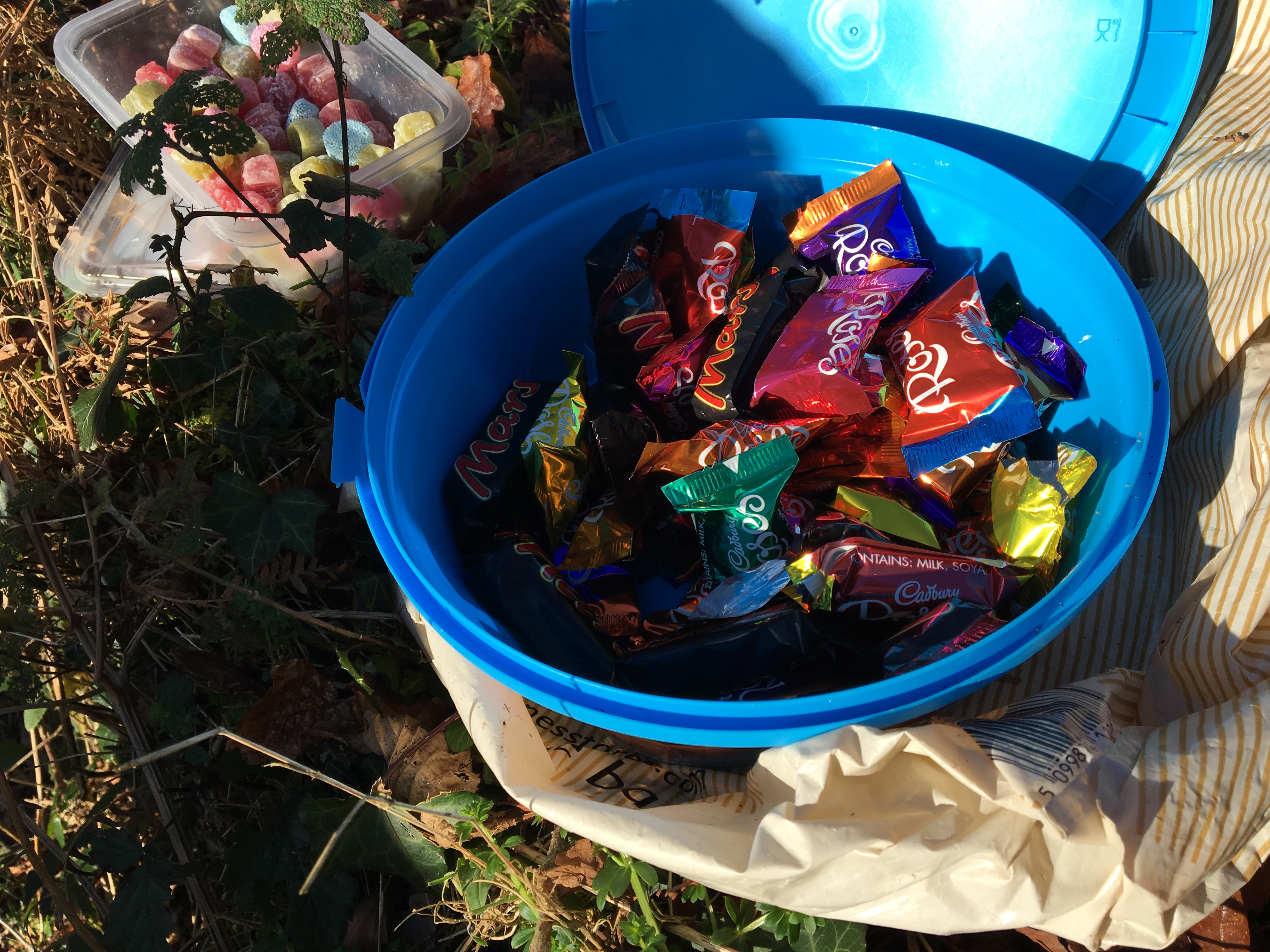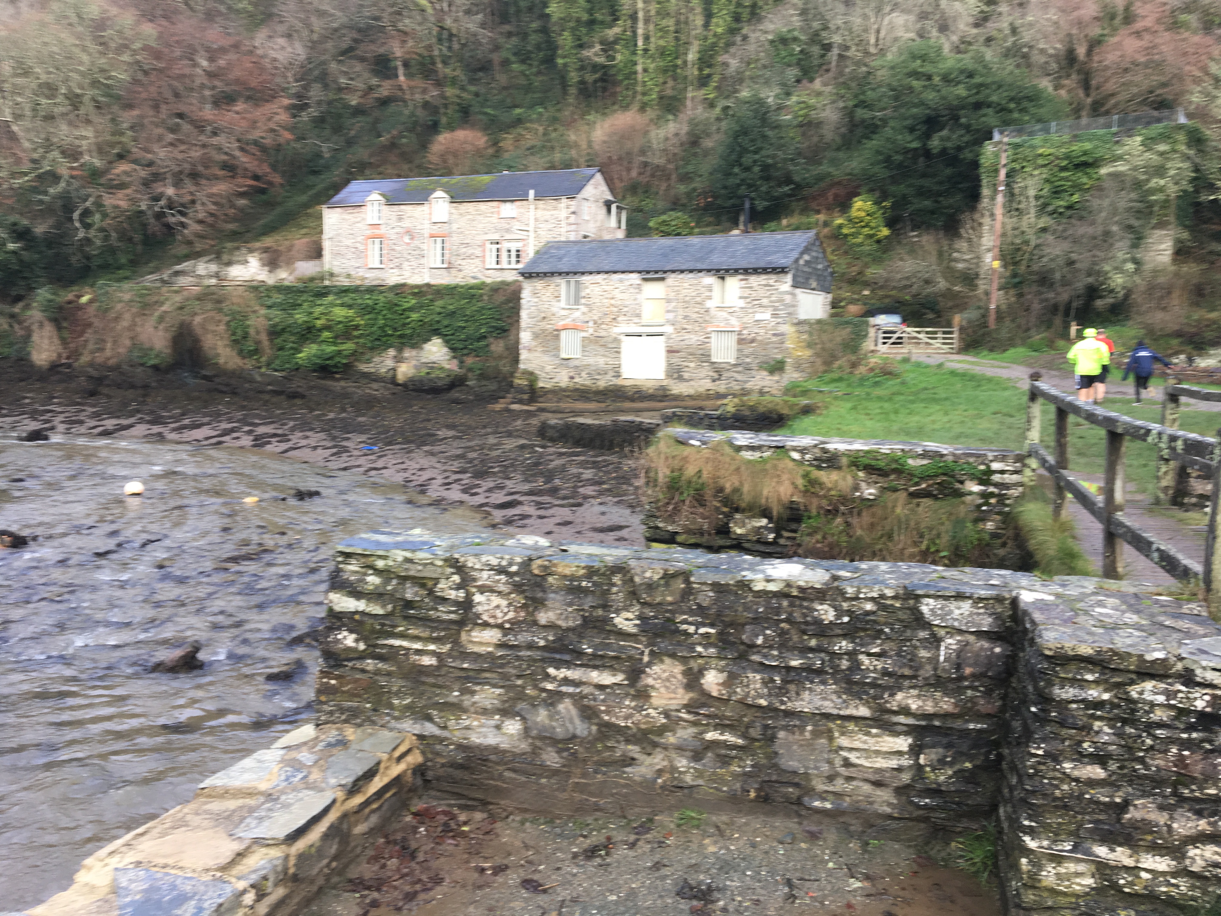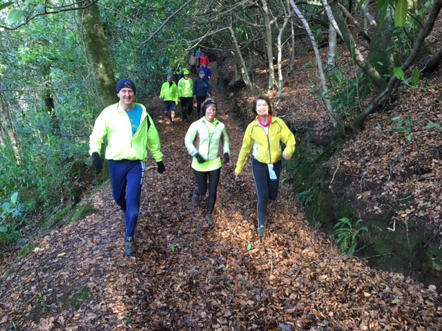 Thankfully, the weather forecast was incorrect as we all gathered in Seaton Car Park on a dry, albeit dismal morning. Many hashers were in festive outfits but B&M and Spin The Wheel would have won the prize (if there had been a prize to win!) dressed as Santa’s elves they really looked the picture. The longs set off along the sea wall only to have to descend a metal ladder down onto the beach to run back to the start. The shorts crossed the road bridge across the river into the woods. The hash took us around Seaton towards Hessenford through the woods, across the main road on to the Seaton Valley trail. There was a Wimp and Rambo split. The Rambo trail followed a very slippery bike track with lots of steep drops. Many hashers ended up on their backsides! Unfortunately, due to the terrible forecast, there was no mulled wine and mince pie stop this year. However, there was a treasure stop with chocolate lollipops and candy canes hanging off a gazebo.