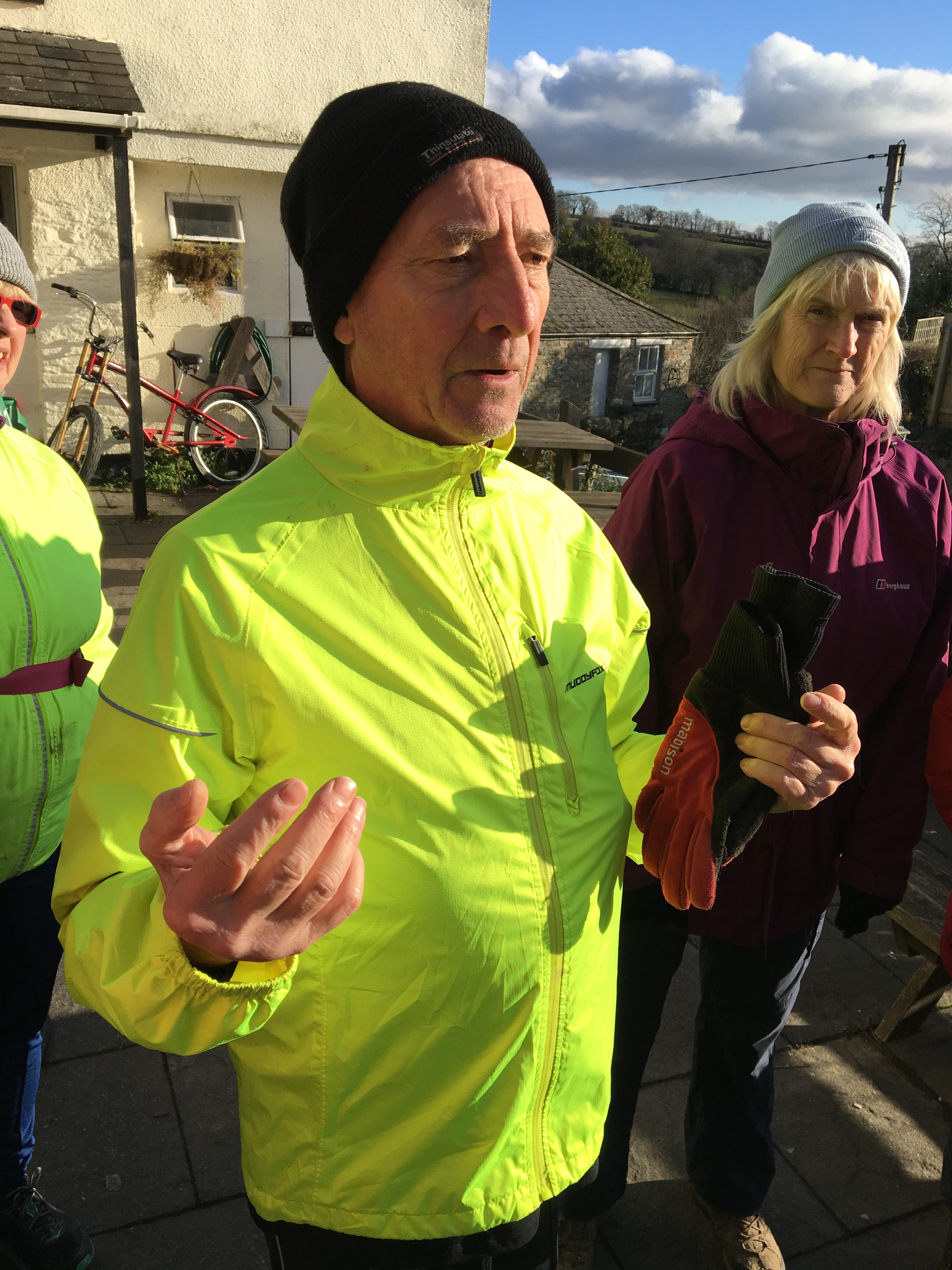 39 Hashers and 5 Hares gathered on a cold morning kitted out in hats and gloves on a thankfully dry day. A change from the last Early hash which was in awful conditions. If I remember correctly , there was wind, rain and zero visibility. Longs and shorts set off in different directions, the shorts went up towards the mast and the longs went off, with Forest leading the way, down towards Minions. Lots of the drops and checks had been vandalised, but the hares were never far away. The longs and shorts joined up at the treasure stop which was a selection of homemade gingerbread treats. A further long short split saw the shorts head over the top of Caradon Hill and down towards the Wheal Tor. The longs did a loop to meet the shorts briefly on the run home. Back at a warm Caradon Inn , down downs were given to the hares Cyril the squirrel and Black Shadow and young Earlys Matthew, Annabelle and Thomas.