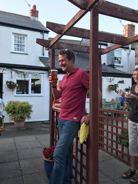 25 hashers gathered in the sunshine in a field belonging to Trelowsa Farm, near the beautiful beach resort of Harlyn Bay anticipating a gentle jog in the sunshine. However we all experienced something slightly different. The hare briefed us on the plans of the farmer to improve soil fertility by crop rotation ( hopefully I got that right) then off we ran through the harvested corn fields. Due to the very dry weather the running was very tough as the soil was baked and hard underfoot. We ran to the edge of one field then stopped confused by the sawdust hieroglyphics! It was a back check so back we went! We carried on into a Rambo area that was almost impossible to get through. Falsie and Scarlet Moggy bravely forced their way through, all hashers behind them were heard moaning about their scratches from the brambles when eventually we were called back by the hare, it was a FALSE! On we went through various Maize fields until we made it back to our cars after 1 hour 40 of hard running. We were all delighted to see Er indoors and Mama Mia patiently waiting with a cold cup of beer and snacks. Thanks you so much for waiting for us. Back at the Farmers Arms: DD for the hares, thank you to both of you for the challenging run, Milestone for Sniffer 1850, huge achievement, well done Sniffer, Naming for young Max, very appropriate name, Gladiator. It was a gorgeous evening and we enjoyed relaxing in the Sunshine at the pub.