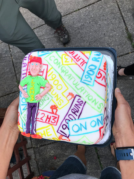 Having been lucky enough to win a Write A Word prize on Spin The Wheel at the AGM, this is it. There was an excellent turnout at Maker for the run on Sunday and surprise, you could see the views. It was a tale of two runs! The short was very well laid and overseen by Kiss Me. Numbers on the short were swelled by the visiting Ward family and the Sawyers family. All seemed to be enjoying themselves with the Wards being first back. Hope they found the treasure. The long was total confusion from the start to finish overseen by the aged equally confused hare. On returning to the cars we were treated to some lovely cakes to celebrate Rubberlegs and Too Posh birthdays. At the increasingly popular Bar Tusker pub we were greeted by Biggles, Rotton Cotton, and three nonagenarians! making the age range at the hash from 4 months to ninety+. Down downs for the hares, two Ward front runners, Rubberlegs for 80th birthday and the GM for 200 runs.