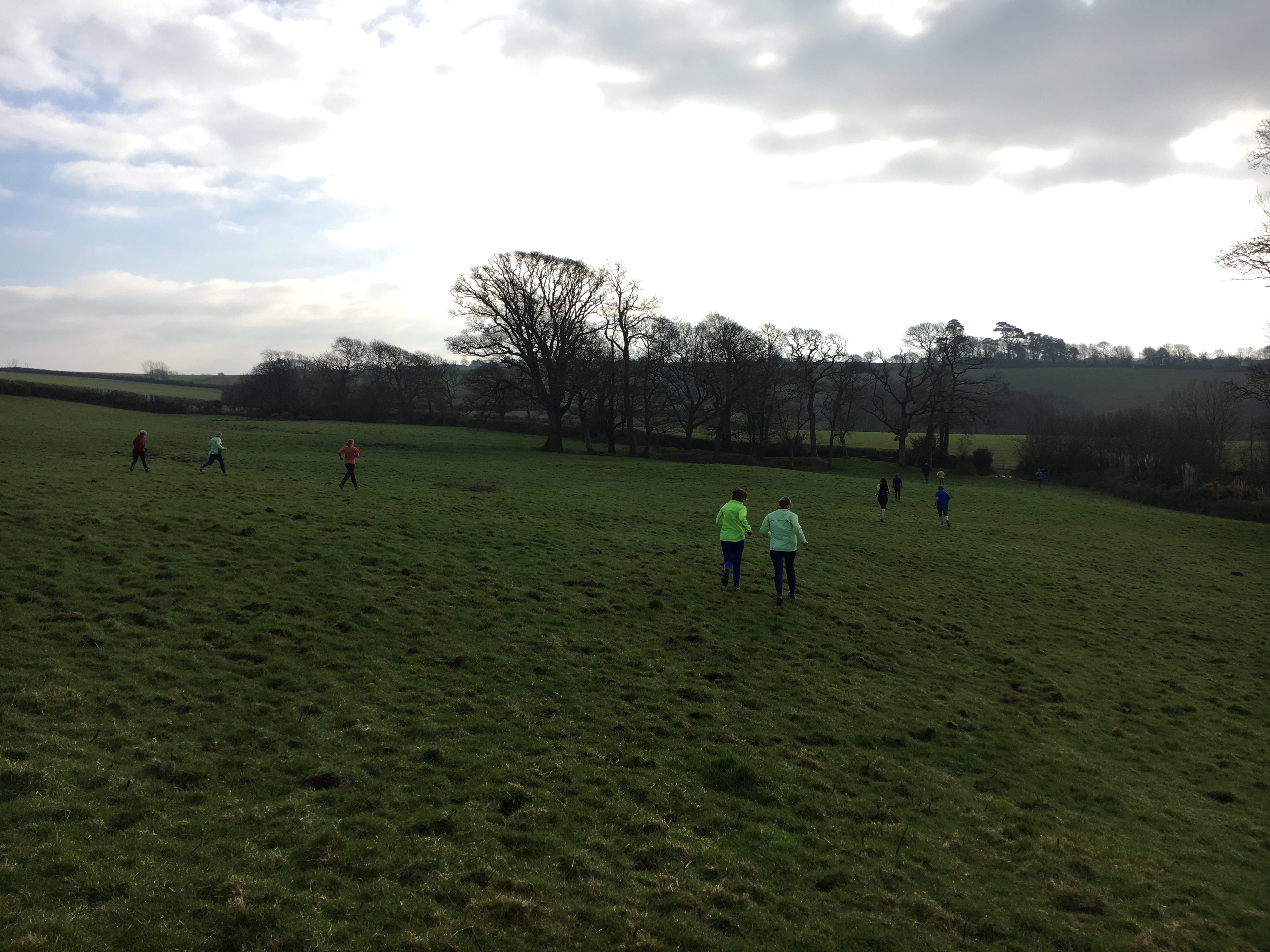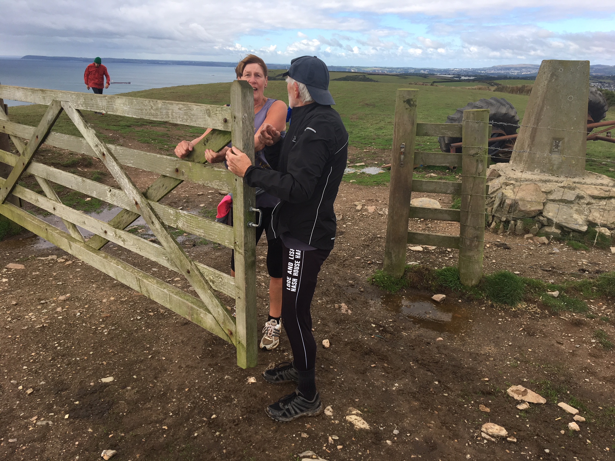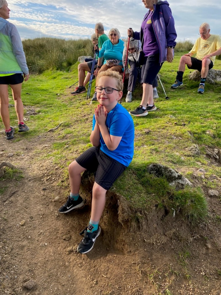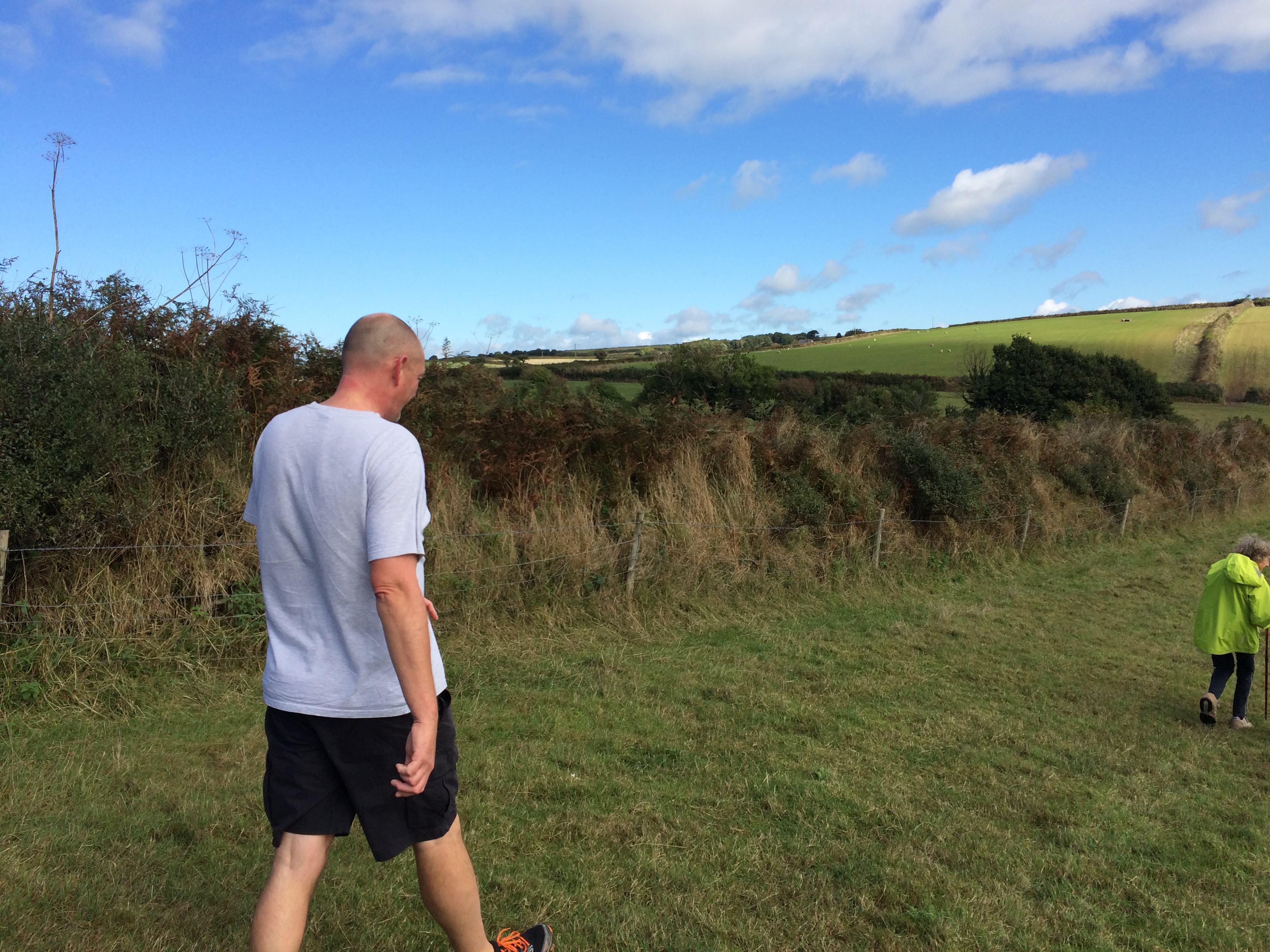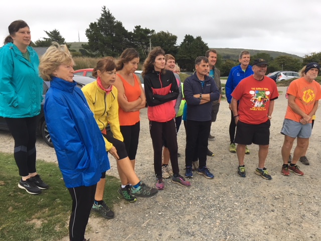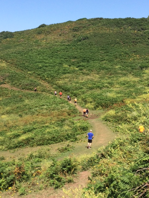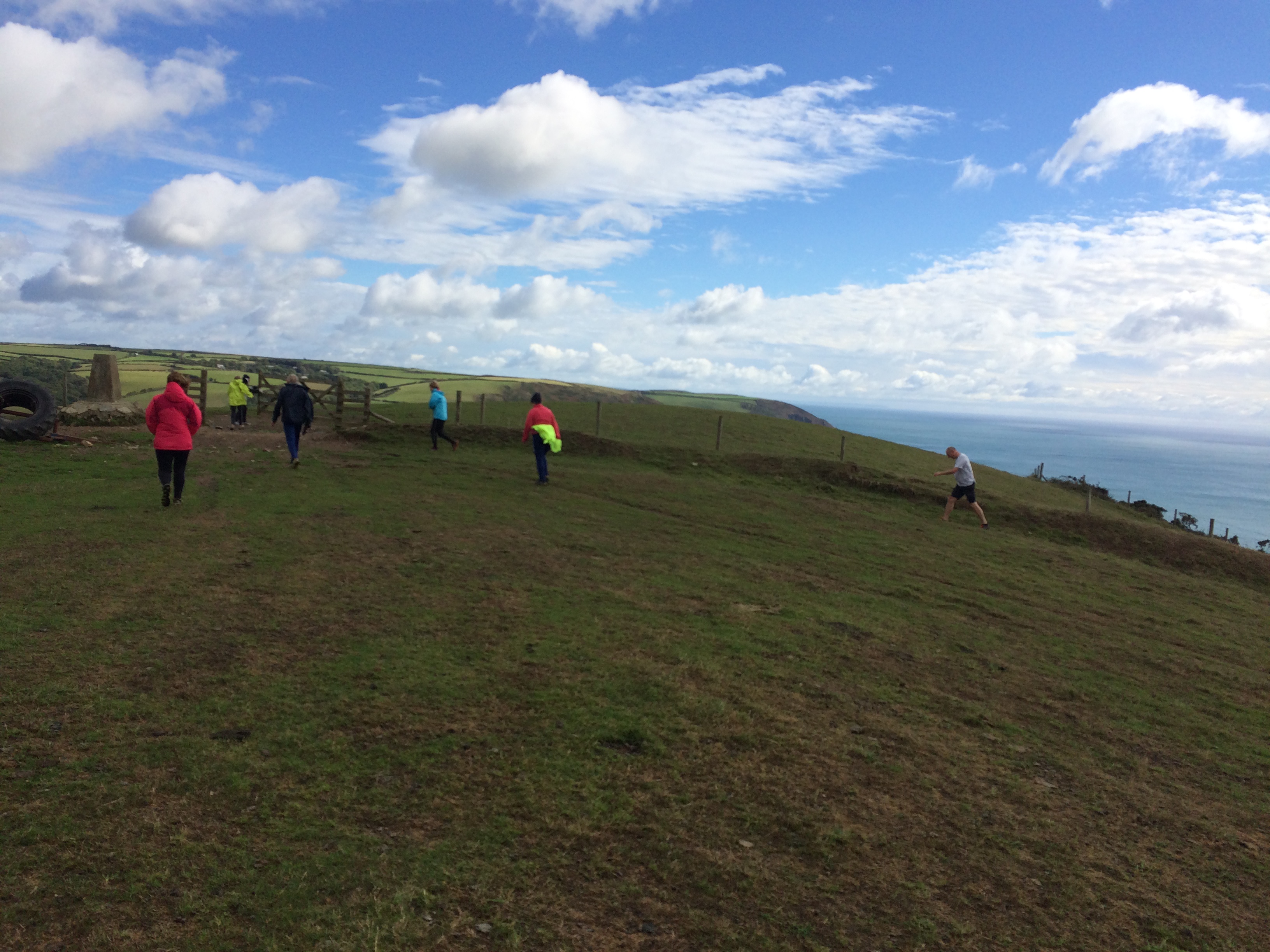 So poor Ted got forgotten again. he really was most put out especially when he heard there was food after too!! Starting at Coldrenick, on another – ‘do I need a jacket or not’ evening, the briefing by The Godmother was short – sawdust, one L/S split, she would lead the longs and Little Bo Peep the shorts. It was good to see some children running – grandkids of hashers down to sunny Cornwall on holiday!!! We started altogether with people checking out all options at the first check. I’m sure we ran on some new territory – was it all part of Coldrenick or perhaps a neighbouring farm? Field after field, road, more fields, most of them having the short stubble left from the hay harvest and some lovely big hay bales. A long short split broke the group up and it was good to see a couple of the younger generation kept on the long. There was a steep climb up one hill which apparently Jon, a friend of Rangi’s tried (unsuccessfully I hasten to add) to chase me and beat me to the top! I only found this out after but it gave Rangi a laugh!! At the top of said hill, we were into long grass and drops very closely laid together. Looking around I realised we were on a hill fort (Padderbury Top according to the OS map), down a road and back into fields – some of us getting a bit cheeky by just running to the field gates to see which one had a check! The Godmother was a bit worried about the time and helped us negotiate a couple of fields before heading steeply down to the bottom of a valley and having a bit of a rambo section, over a fence, across some boggy area and back up the other side, into a field, where we recognised an outbuilding and just ran back to Coldrenick. A great hash with lots of variety – thank you hares.