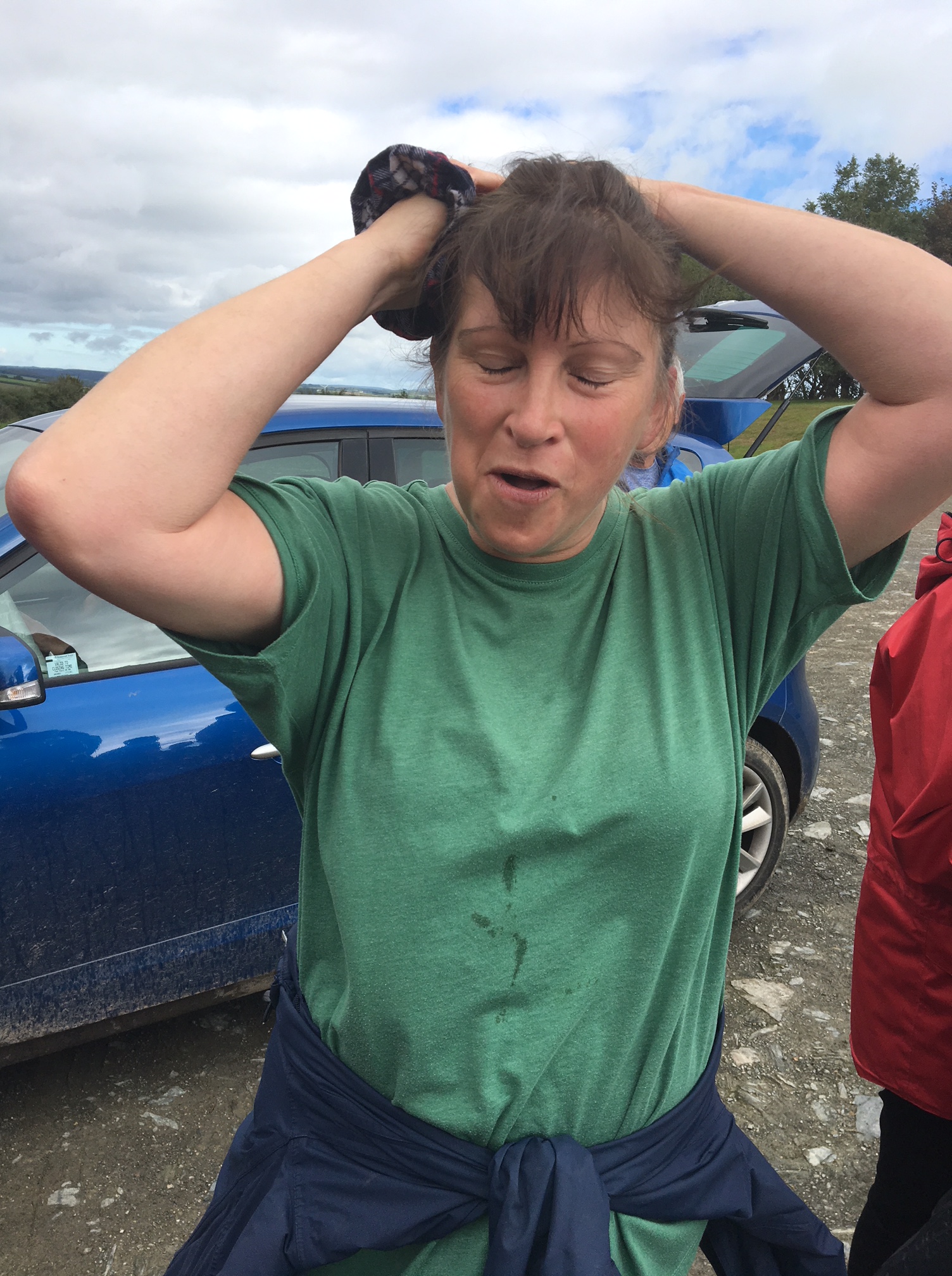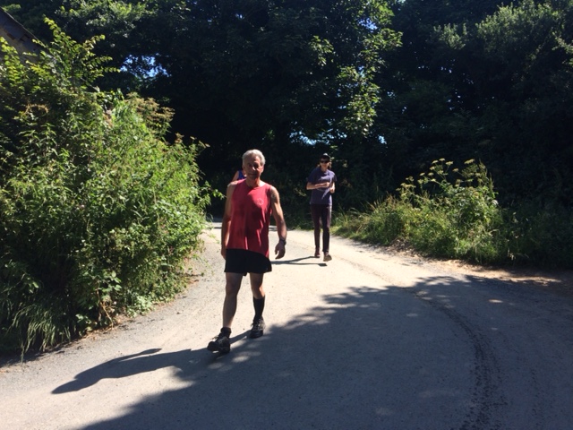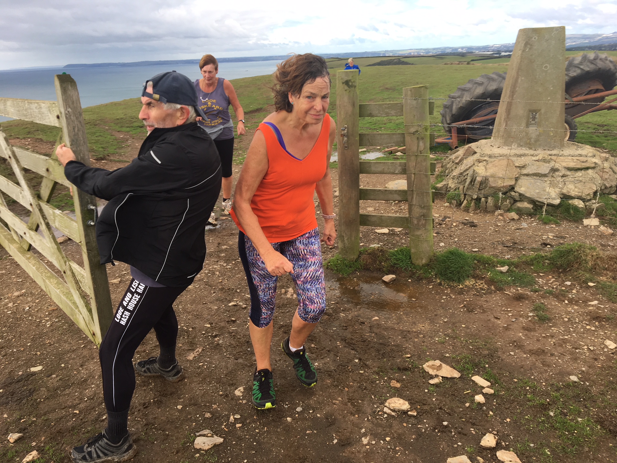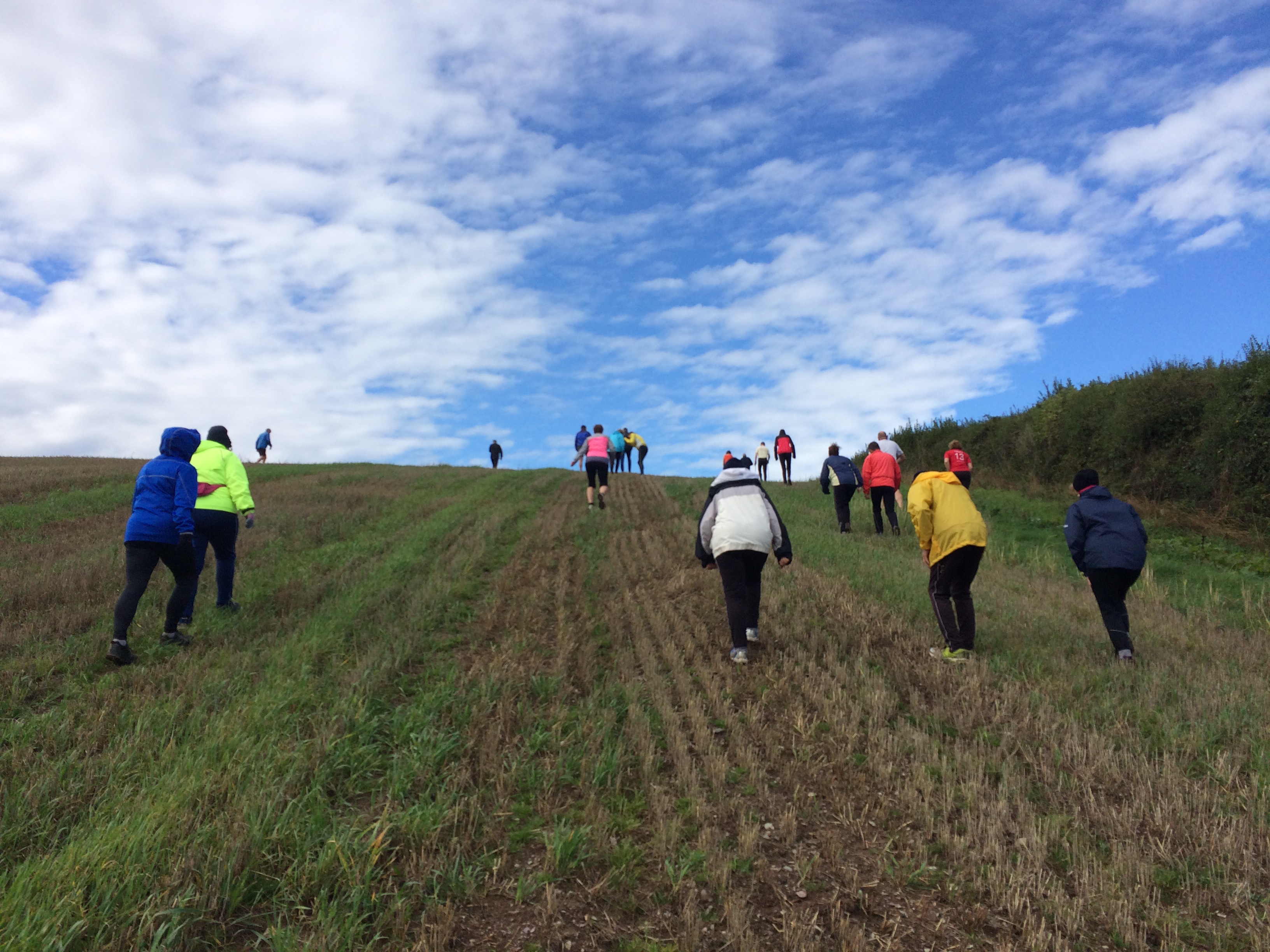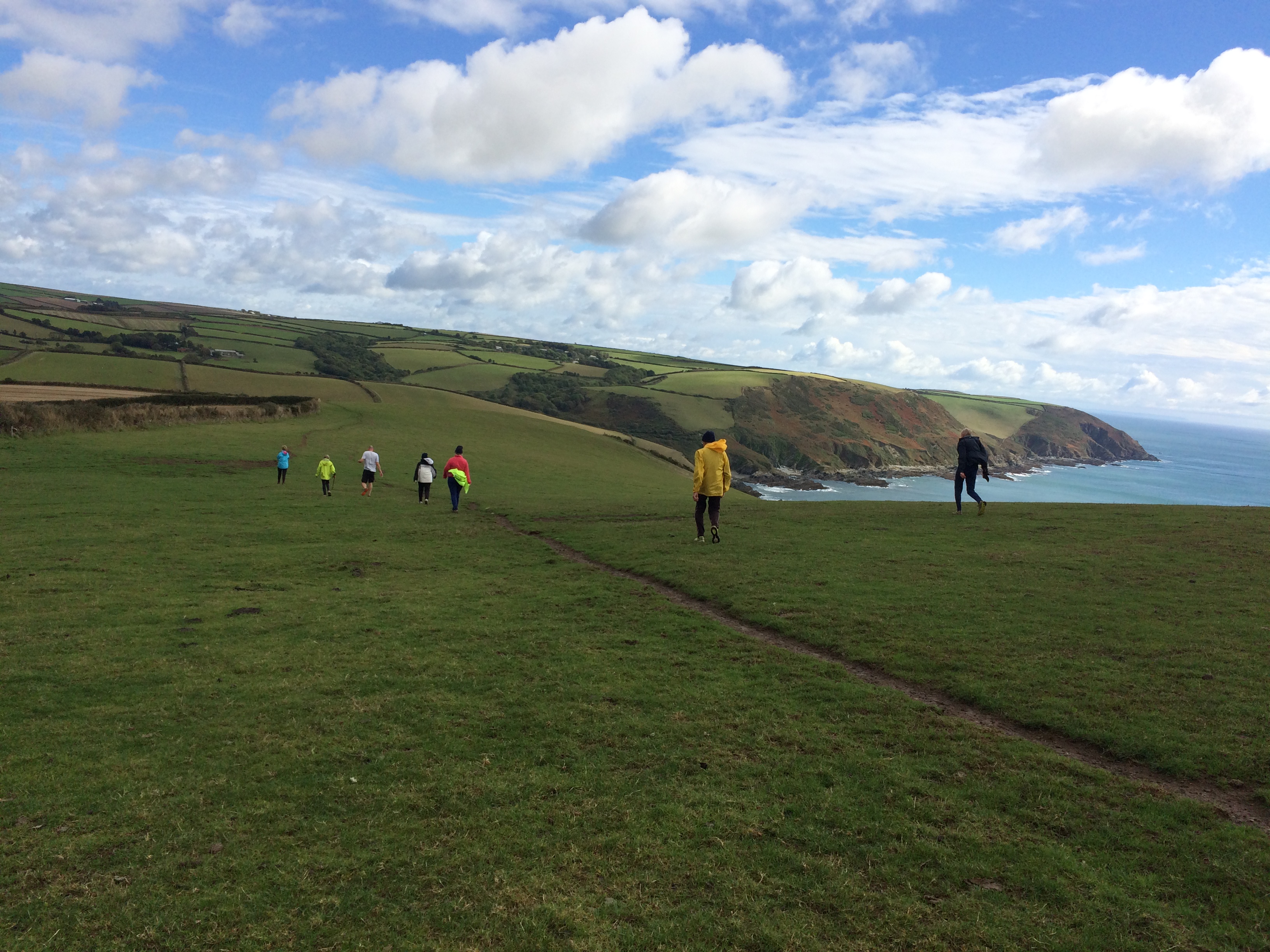 So poor Ted got forgotten again. he really was most put out especially when he heard there was food after too!! Starting at Coldrenick, on another – ‘do I need a jacket or not’ evening, the briefing by The Godmother was short – sawdust, one L/S split, she would lead the longs and Little Bo Peep the shorts. It was good to see some children running – grandkids of hashers down to sunny Cornwall on holiday!!! We started altogether with people checking out all options at the first check. I’m sure we ran on some new territory – was it all part of Coldrenick or perhaps a neighbouring farm? Field after field, road, more fields, most of them having the short stubble left from the hay harvest and some lovely big hay bales. A long short split broke the group up and it was good to see a couple of the younger generation kept on the long. There was a steep climb up one hill which apparently Jon, a friend of Rangi’s tried (unsuccessfully I hasten to add) to chase me and beat me to the top! I only found this out after but it gave Rangi a laugh!! At the top of said hill, we were into long grass and drops very closely laid together. Looking around I realised we were on a hill fort (Padderbury Top according to the OS map), down a road and back into fields – some of us getting a bit cheeky by just running to the field gates to see which one had a check! The Godmother was a bit worried about the time and helped us negotiate a couple of fields before heading steeply down to the bottom of a valley and having a bit of a rambo section, over a fence, across some boggy area and back up the other side, into a field, where we recognised an outbuilding and just ran back to Coldrenick. A great hash with lots of variety – thank you hares.