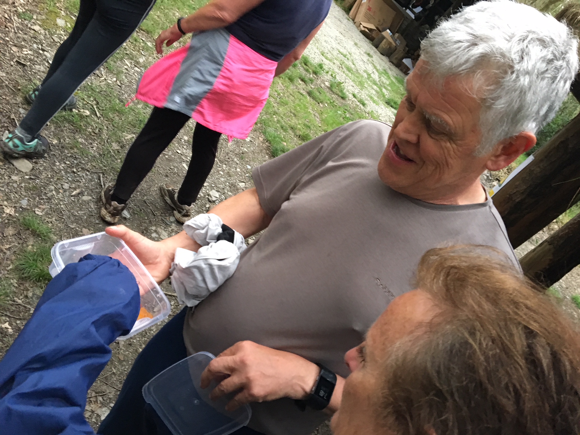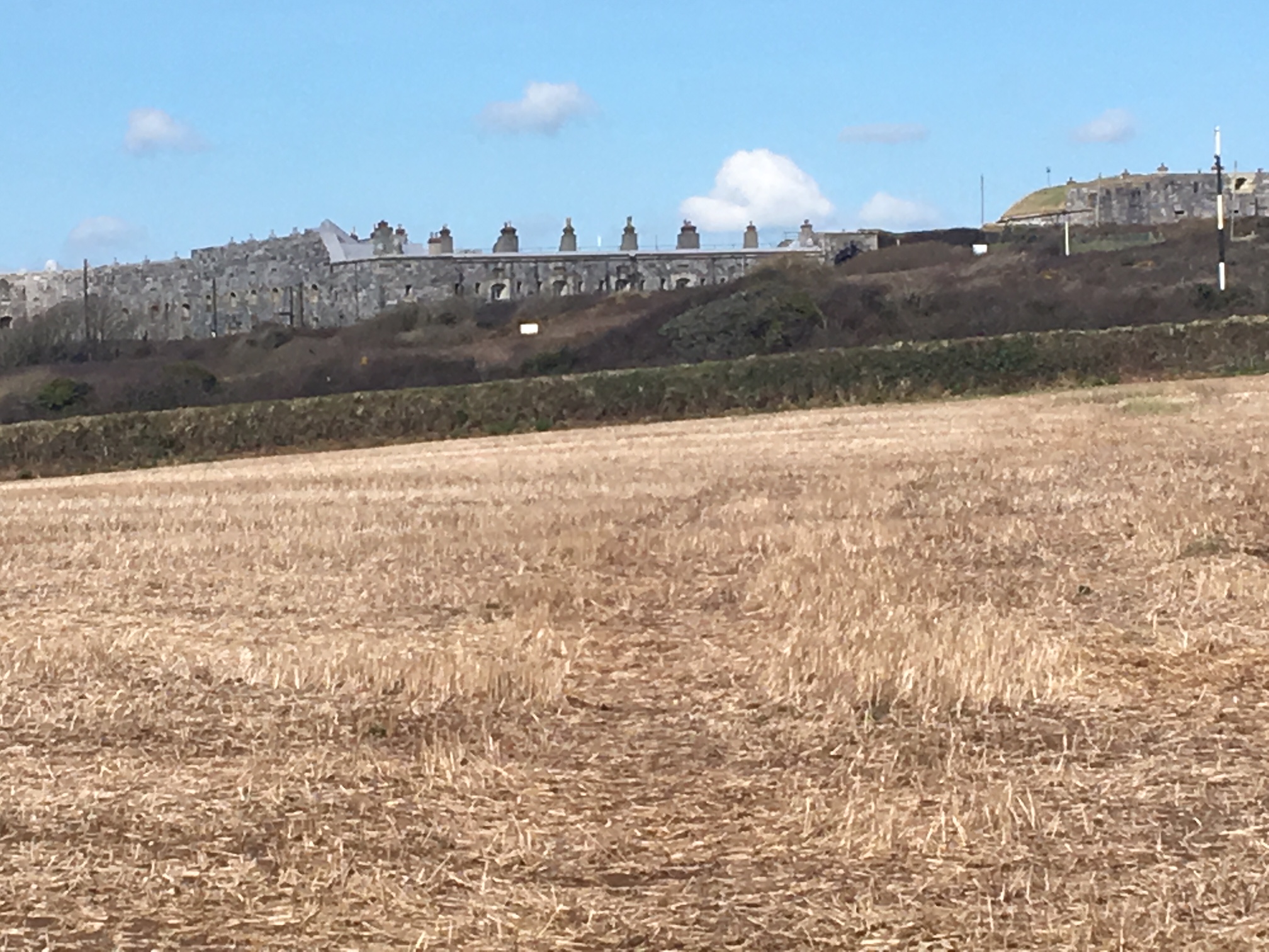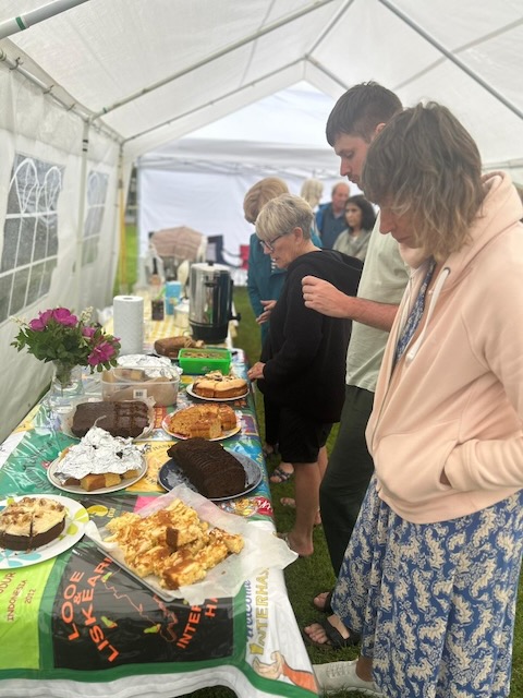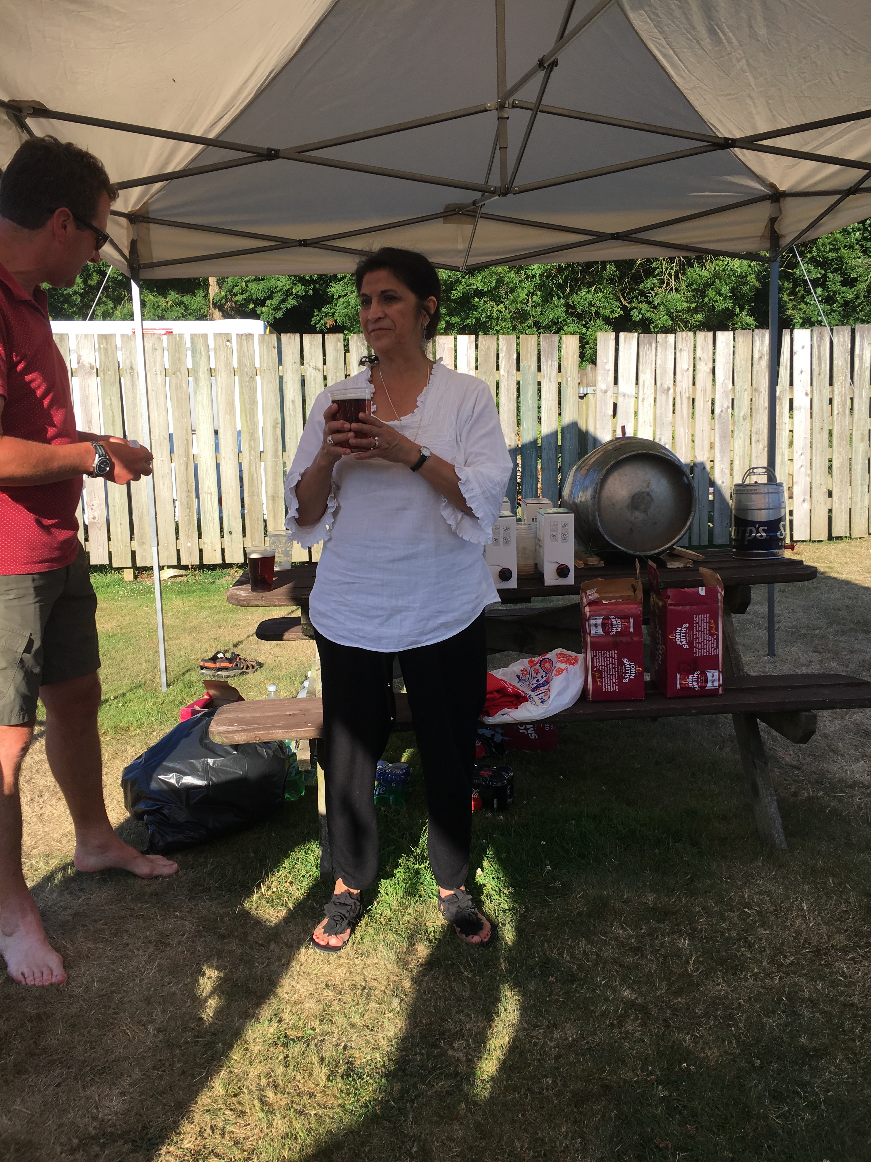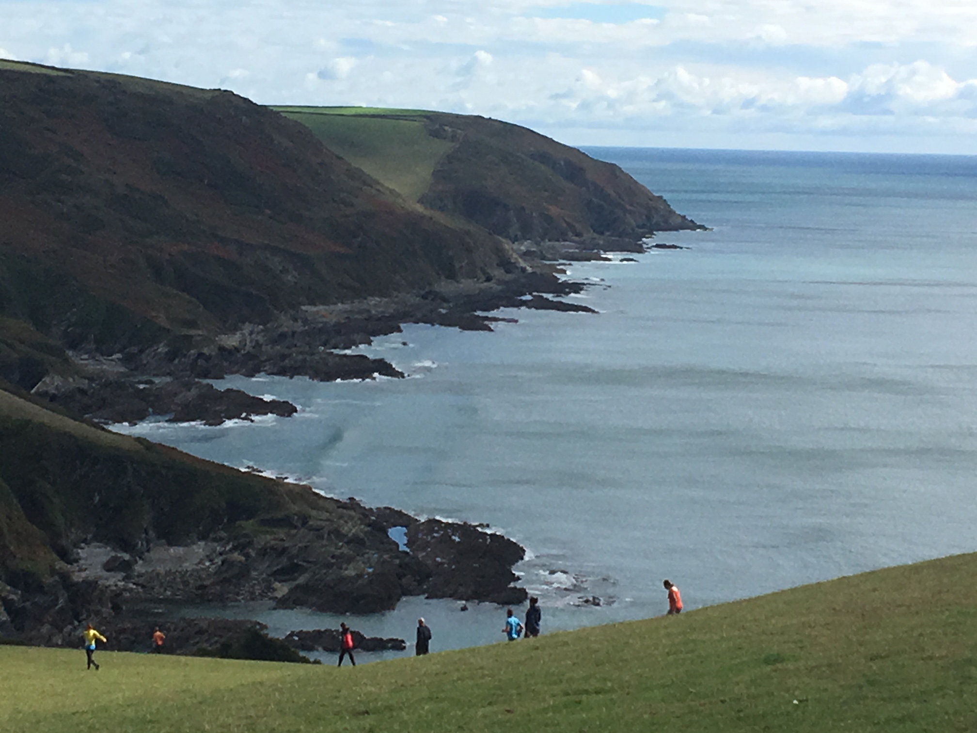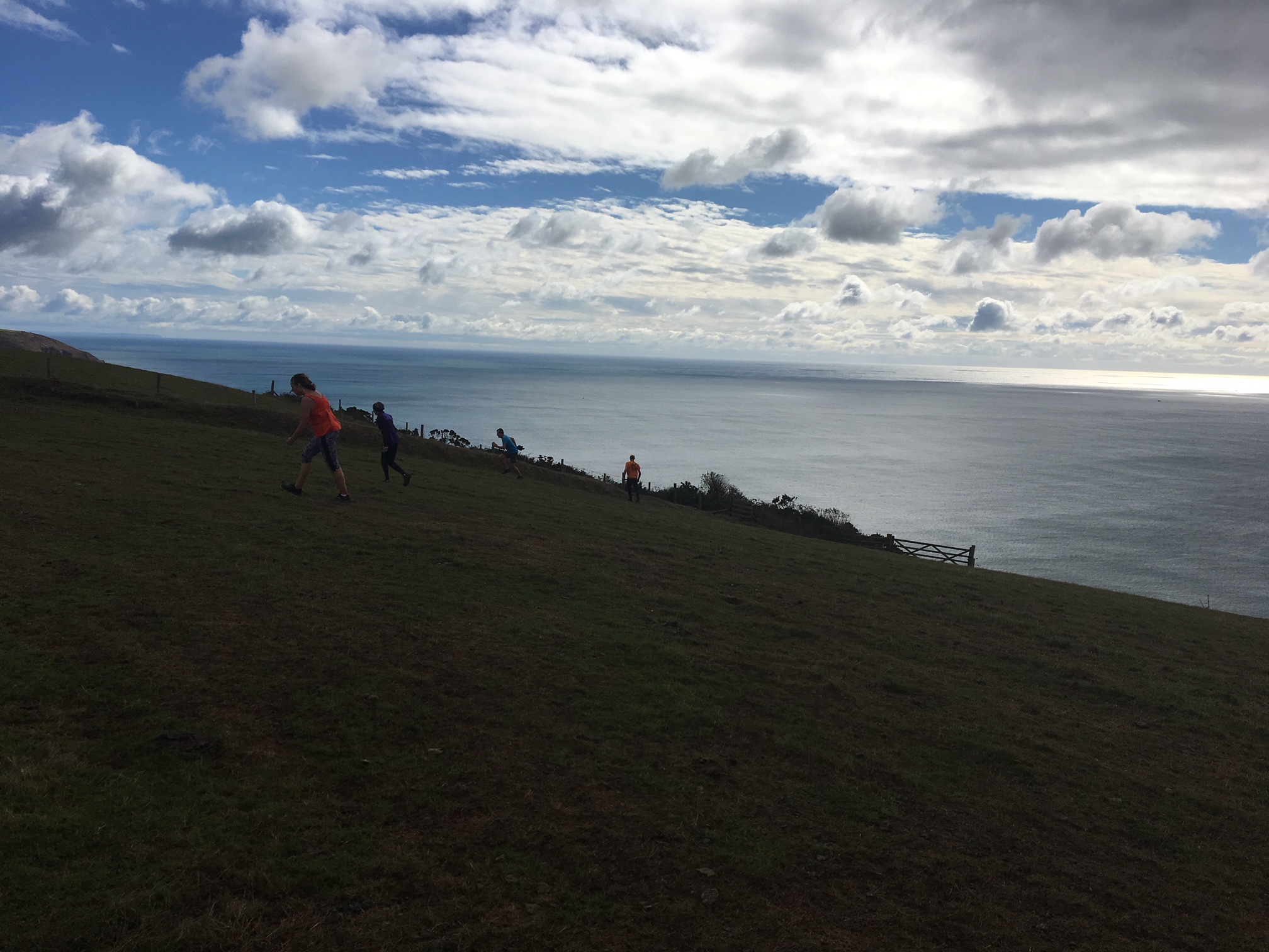 So poor Ted got forgotten again. he really was most put out especially when he heard there was food after too!! Starting at Coldrenick, on another – ‘do I need a jacket or not’ evening, the briefing by The Godmother was short – sawdust, one L/S split, she would lead the longs and Little Bo Peep the shorts. It was good to see some children running – grandkids of hashers down to sunny Cornwall on holiday!!! We started altogether with people checking out all options at the first check. I’m sure we ran on some new territory – was it all part of Coldrenick or perhaps a neighbouring farm? Field after field, road, more fields, most of them having the short stubble left from the hay harvest and some lovely big hay bales. A long short split broke the group up and it was good to see a couple of the younger generation kept on the long. There was a steep climb up one hill which apparently Jon, a friend of Rangi’s tried (unsuccessfully I hasten to add) to chase me and beat me to the top! I only found this out after but it gave Rangi a laugh!! At the top of said hill, we were into long grass and drops very closely laid together. Looking around I realised we were on a hill fort (Padderbury Top according to the OS map), down a road and back into fields – some of us getting a bit cheeky by just running to the field gates to see which one had a check! The Godmother was a bit worried about the time and helped us negotiate a couple of fields before heading steeply down to the bottom of a valley and having a bit of a rambo section, over a fence, across some boggy area and back up the other side, into a field, where we recognised an outbuilding and just ran back to Coldrenick. A great hash with lots of variety – thank you hares.
