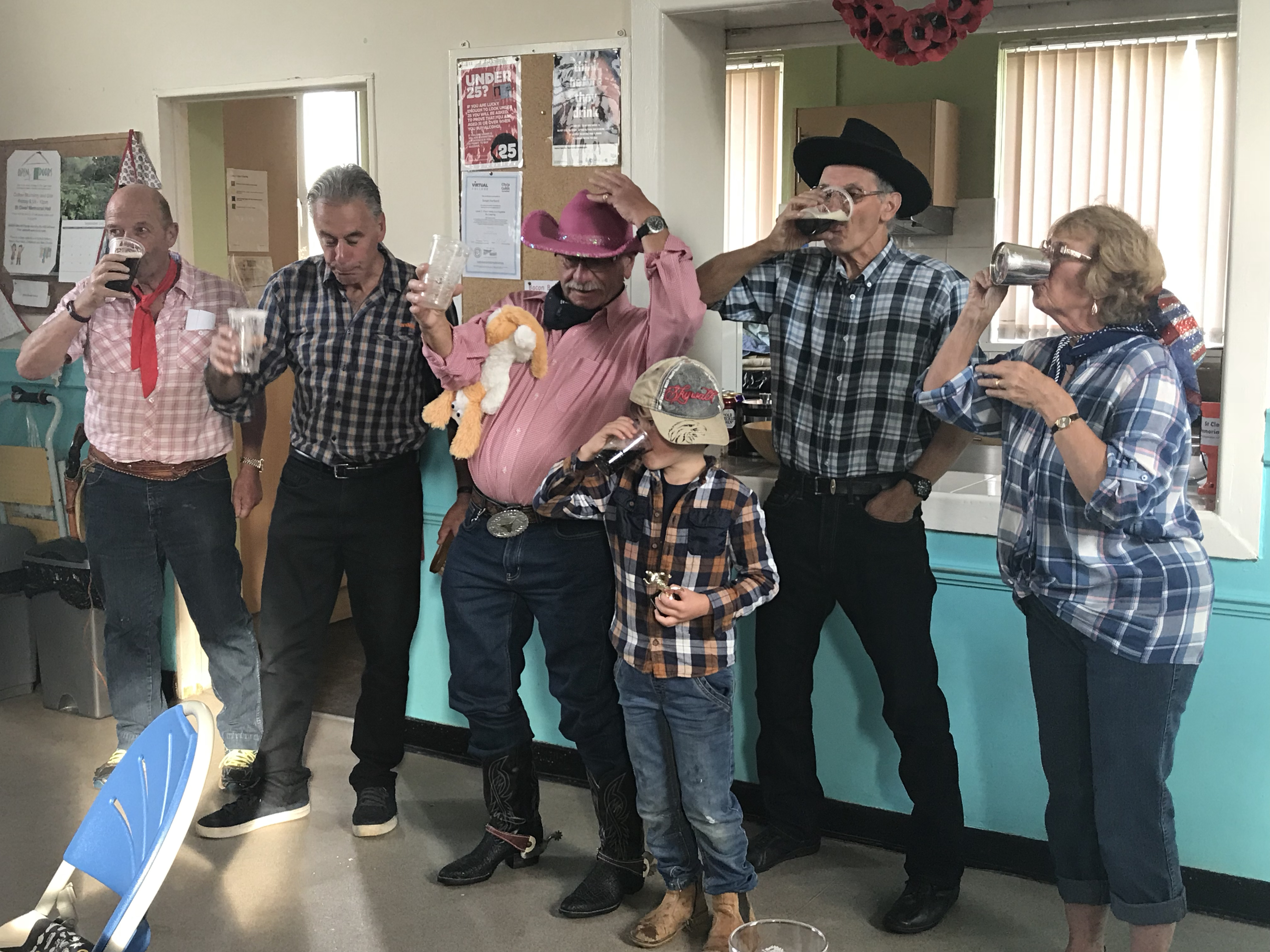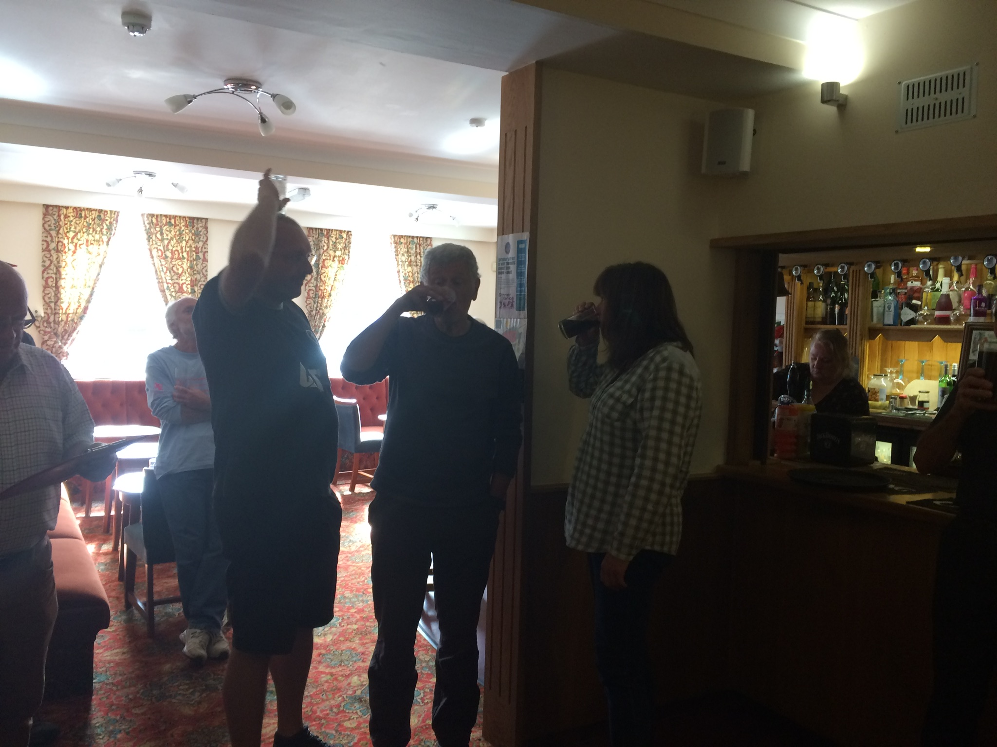 What a great turnout! 36 adults and 4 children turned up for the run at Looe Mills Lay-by on a lovely dry morning. We all set off running (or rather walking) up the hill to Looe Mills Farm. The farmer was standing at the top of the hill and said that he thought Rachel had told him it was a run, not a walk! Once we reached the top of the hill we were off…..running through fields full of sheep. Mystic Meg ran a through a field to a false and on the way back was chased by a large flock of sheep. We ended up in High Wood where I am told that Cyril the Squirrel ran almost all the falses. A really enjoyable, well-laid run. Thanks to the hares. Back at the on-down at the British Legion (who opened just for us!) Jaws stood in as RA. Down downs given to the hares, Hide ‘n Seek and Sun Dodger, Eric Big Axe who finally turned up and got the ‘Too Much Tarmac’ award (the On Sec will be very pleased to get rid of it as he has brought it to every hash since the AGM), Liam and Alfie for good running and Zak, their dad, for not noticing any drops but Alfie pointed out that he was standing next to a check! Thank you to Get One Free for supplying the raffle prizes.