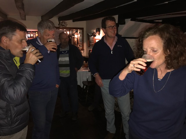 Well what can I say about the run? Wet Wet Wet! It was laid in a mixture of red and blue chalk and sawdust which all fared badly in the persistent rain. Brillo had the sense to hare from the bar. Capt’n Oates lived up to her hash name but thankfully didn’t perish in the conditions. The elusive treasure stop was only found by the walkers and was passed round back at the pub. Down downs for the hares Cpt Oates, Brillo (Grenville and Gasbag in their absence) Also a down-down to Foofoo for finding the treasure and a belated birthday for Too Posh the RA added an extra three years to her actual age. Hash name for one of our youngest Hashers Fynn as ‘Raffle’ after lots of different suggestions on WhatsAp. Fortunately the name was chosen by his Nana or he could have ended up with Boaty Mc Boatface! Thank you to the Cecil Arms for supplying sandwiches, and the hares.